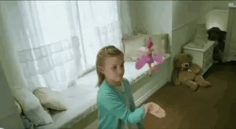 3. Luego, cuando la muñeca comience a descender, simplemente extiende tu mano debajo de la hada voladora y esta comenzará a subir de nuevo.