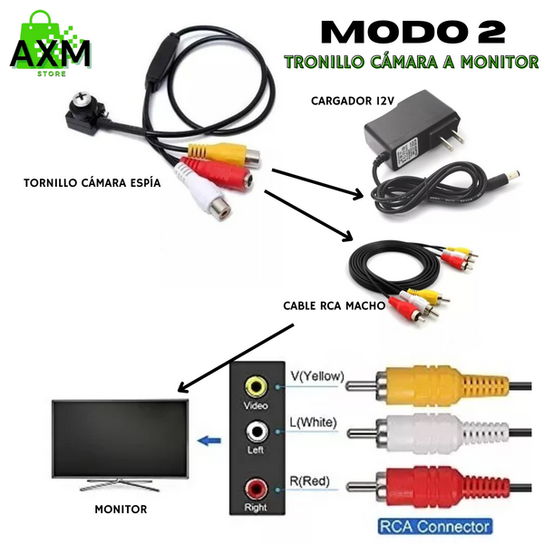 1. Conecta cable rojo y cable blanco RCA de la cámara a cable RCA macho.